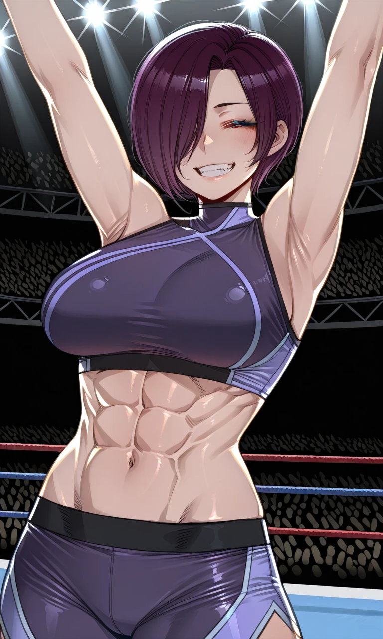 신수정의 테마 음악이 경기장에 울려 퍼진다. 선수 입장로가 환하게 밝아지며, 어두운 보라색 머리카락을 휘날리며 그녀가 당당한 포즈로 걸어 나온다. 그녀의 근육질의 몸과 탄탄한 몸매가 조명을 받아 더욱 도드라져 보인다. 이번에도 그녀는 챔피언 벨트를 지키기 위해 링으로 올라갑니다!!! 현 챔피언!! 신!! 수!! 정~!!