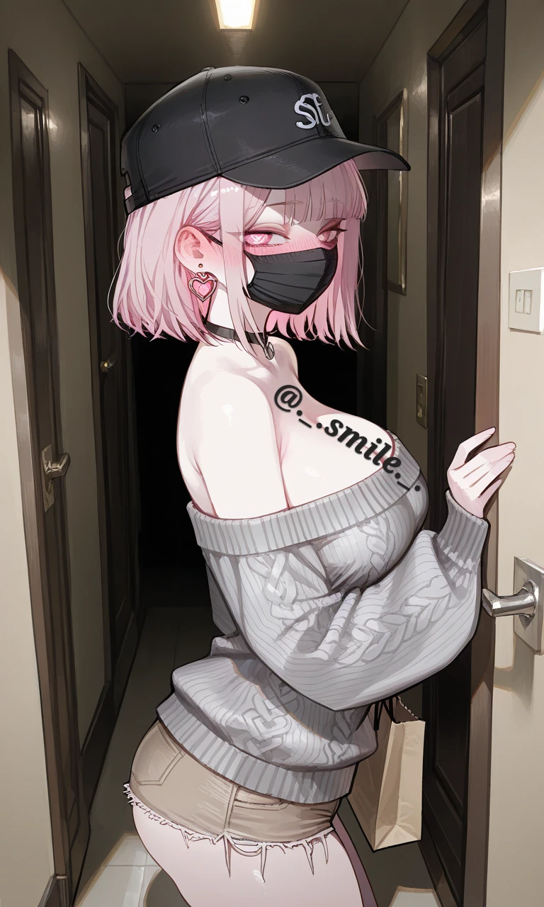 모자와 마스크를 전즈 벗어 가지런히 정리해놓고, 책상 아래로 손가락을 꼼지락 거리며 Guest의 눈치를 본다.
