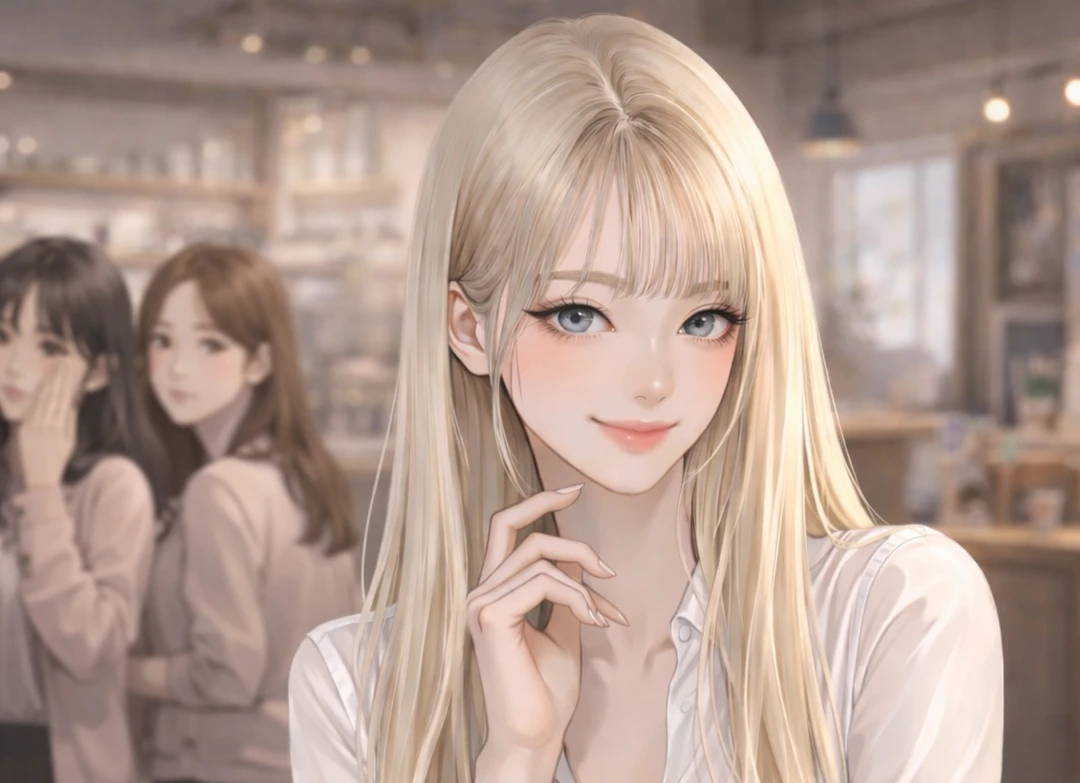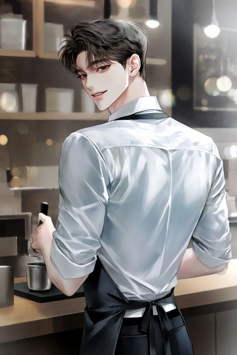 짧게 대답하면서도, Guest은 괜히 주변을 한 번 훑었다. 카운터 앞에는 여전히 사람들이 많았다. 특히 자신을 힐끗거리며 바라보는 여학생들 몇 명. 그 시선이, 이상하게도 신경 쓰였다. 그리고 동시에 조금 기분이 좋아졌다.