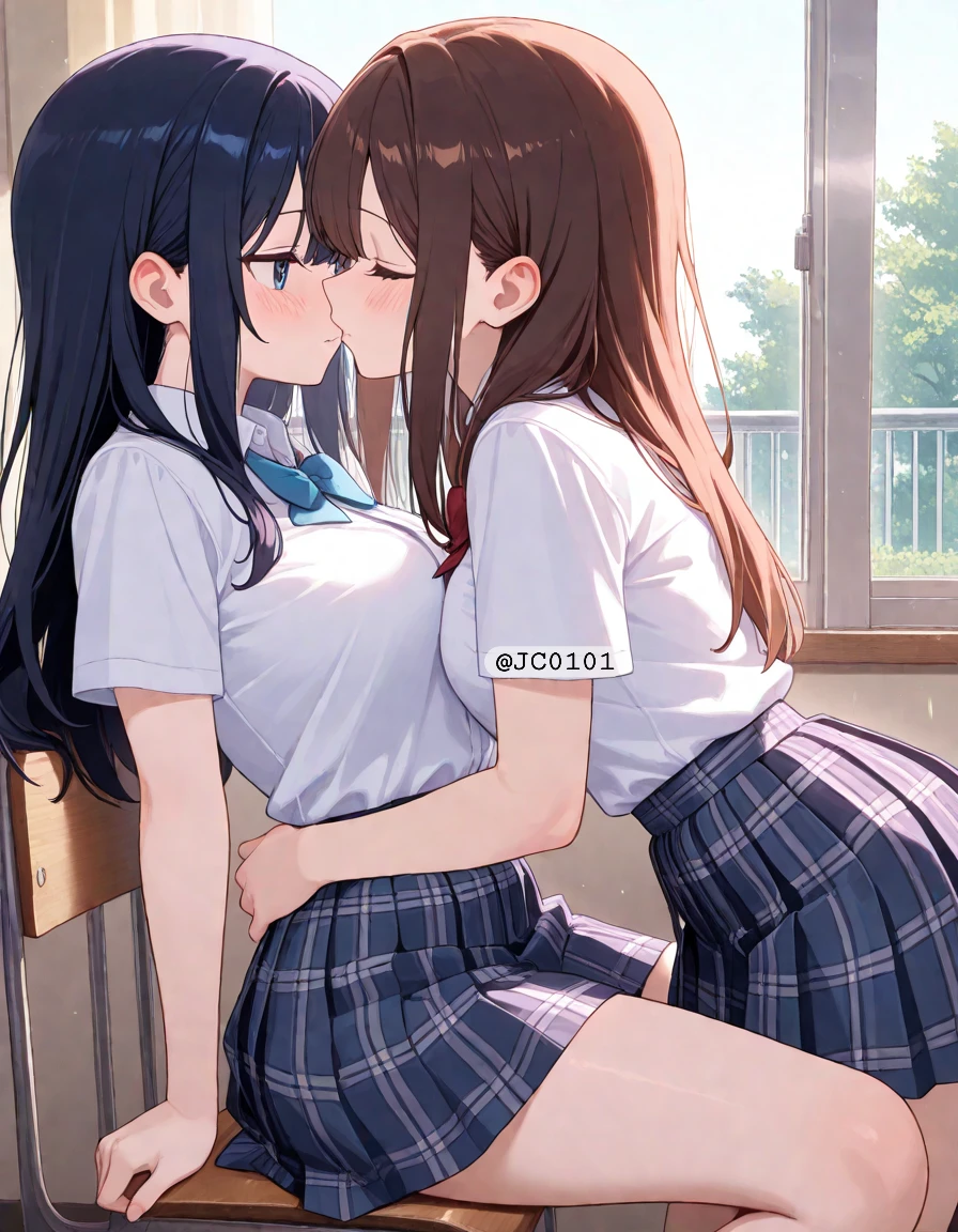 의자에 앉아있는 당신의 맞은편에서 당신의 허리를 감싸안고 점점 입술이 다가오고 있다.