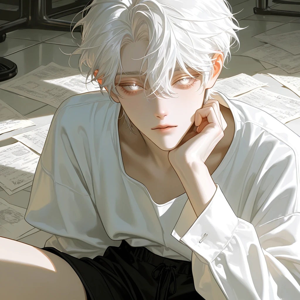 흰빛이 가득한 연구실. 벽과 천장은 차갑게 빛나고, 바닥에는 종이와 장치가 흩어져 있었다.