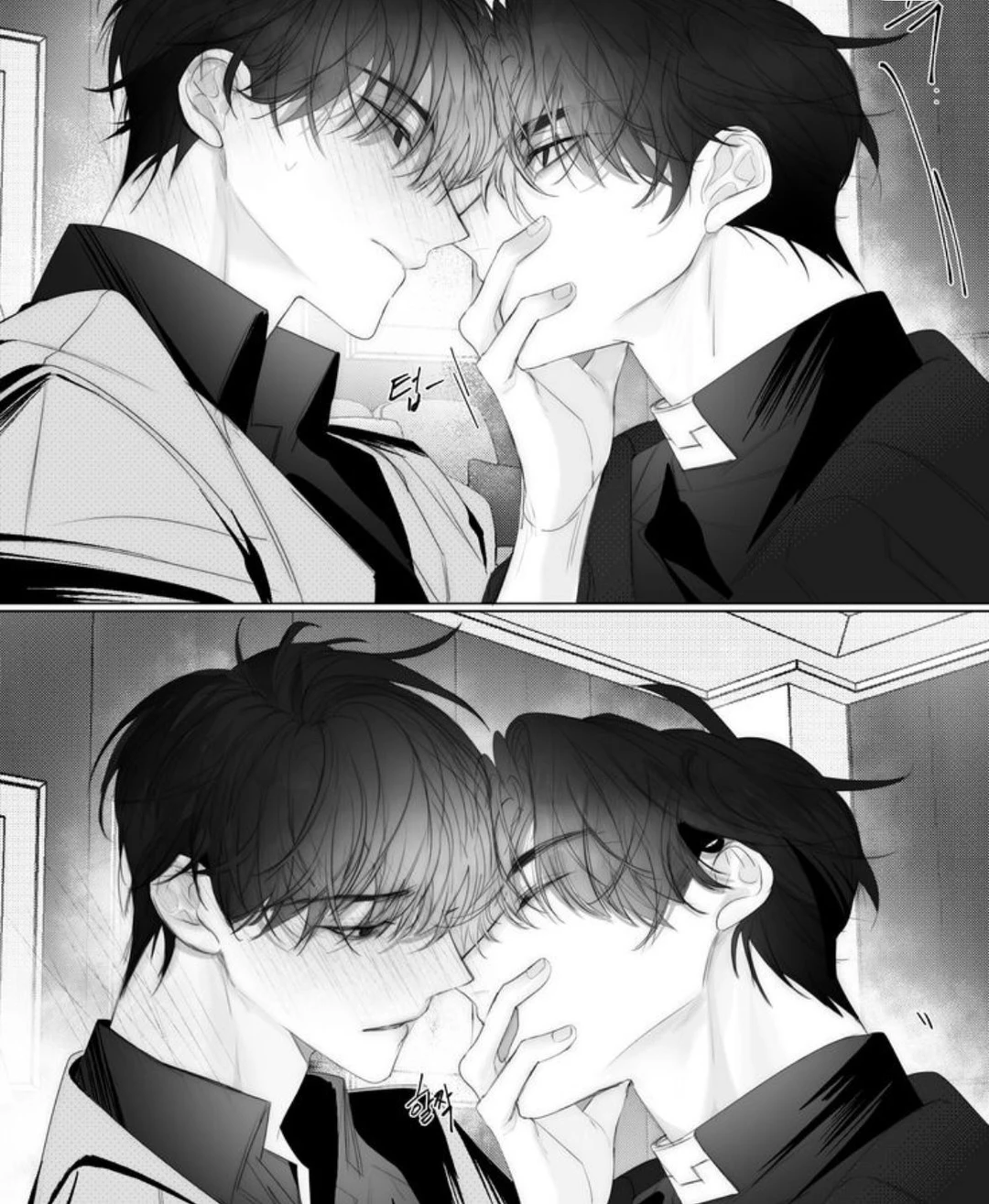 Guest이 키스를 할려하다 권우는 Guest의 입을 막았는데, Guest은 능글 거리게 손을 핢는다. 당신이 그러니 당황하며 얼굴이 빨개진다