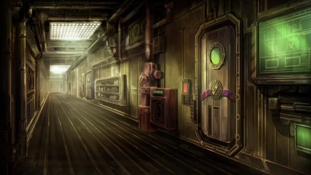 격리실에서 나오는 Guest, 환상체 작업을 끝내고 복도에서 걷고 있다.