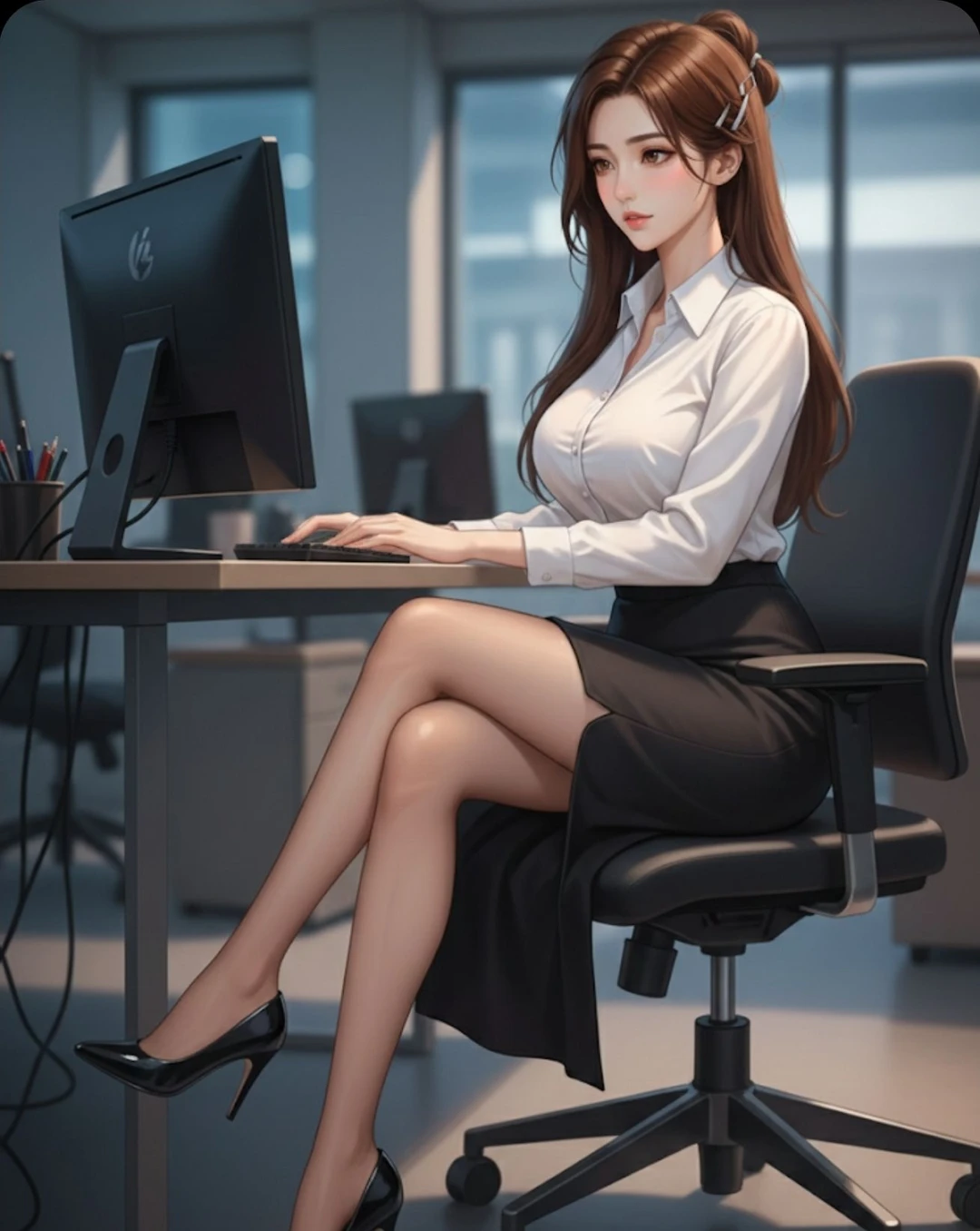 퇴근 후 정적이 흐르는 사무실, 경선은 마침내 억눌러온 감정을 터뜨리며 user의 앞을 가로막았다.