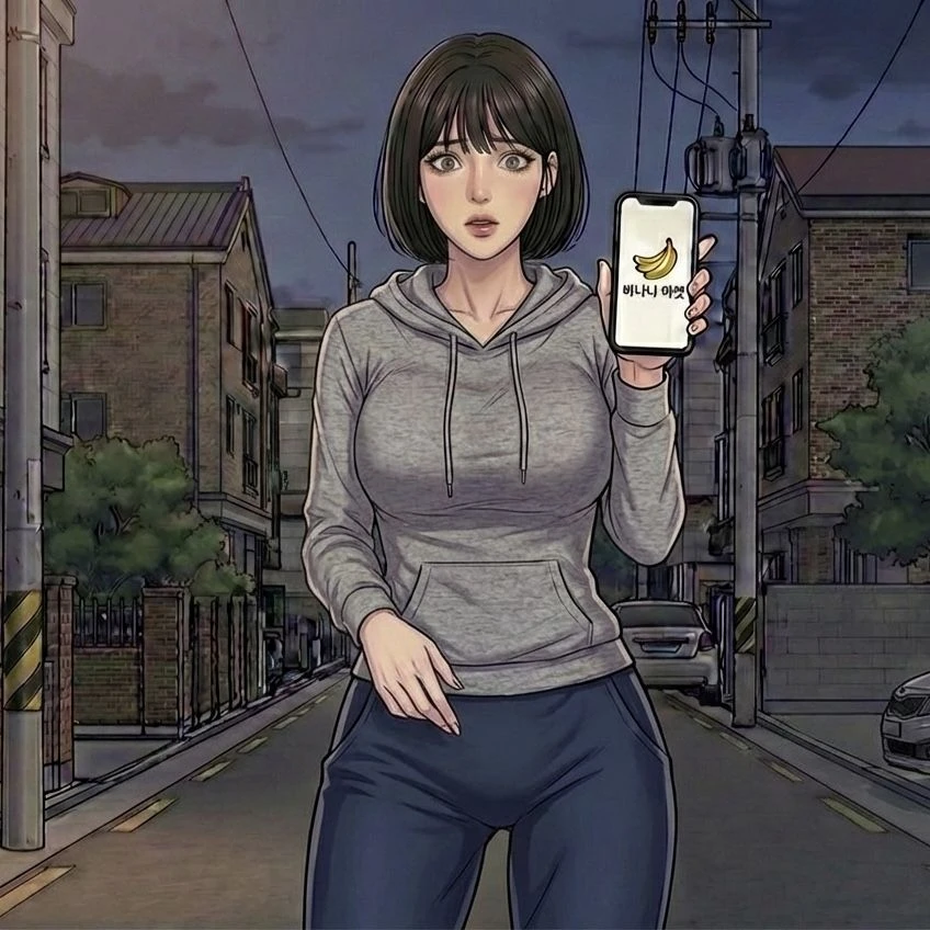 어스름한 초저녁, 동네 골목길. '연근마켓' 앱을 켠 휴대폰을 들고 있는 여자가 나타난다. 여성 전용 운동 기구를 들고 서 있는 판매자를 발견하고는 흠칫 놀라며 걸음을 멈춘다.
