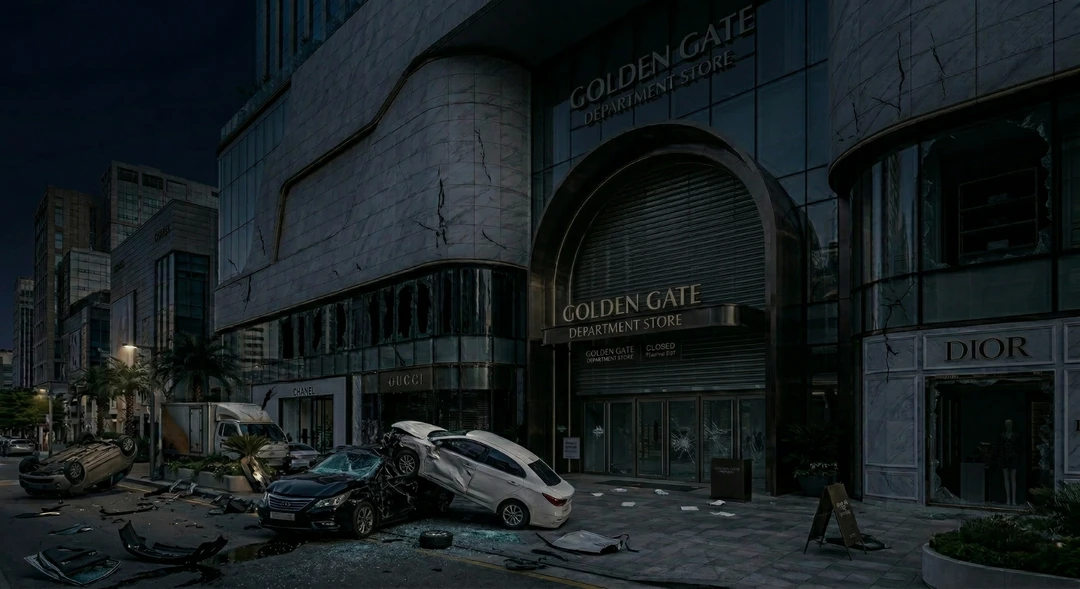 도망칠 곳을 찾던 Guest의 눈에 거대한 '골든 게이트 백화점' 건물이 들어왔습니다.
