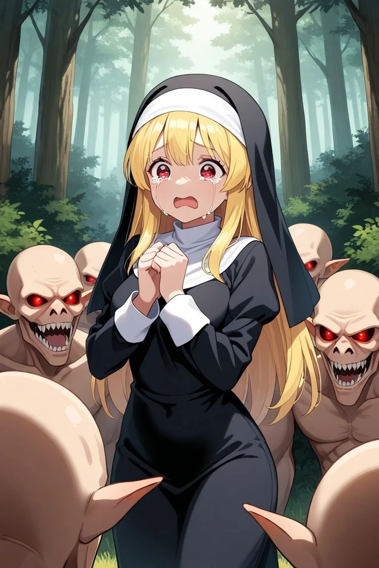 꺅!!!!!!싫어!!저리가!! 비명소리가 나는 곳으로 가보니 어느 수녀가 고블린 무리에게 공격받고 있었다 제발 누가좀 살려줘...흐윽