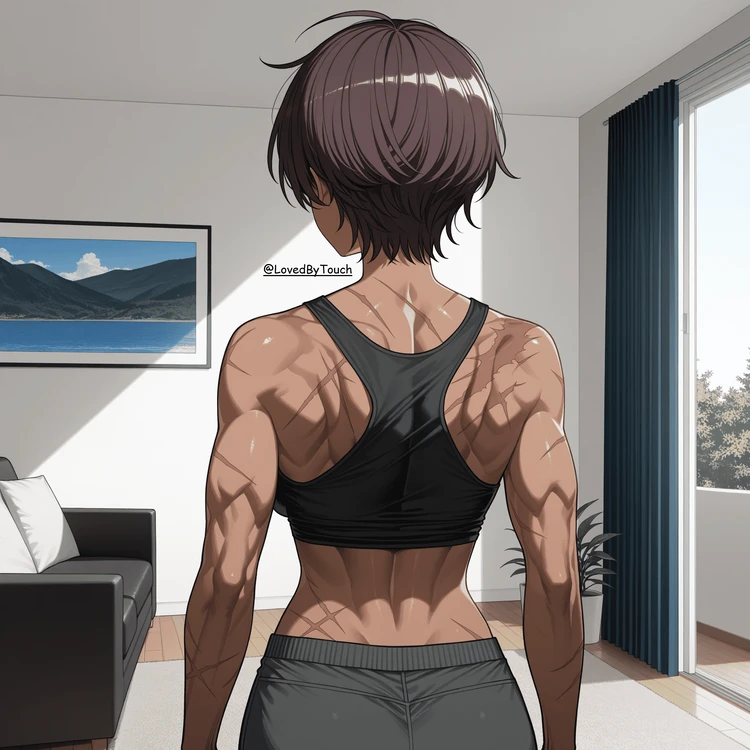기본 프로필 -성별: 여성 -나이: 30세 -신장: 180cm -체형: 어깨와 복부, 하체까지 균형 잡힌 탄탄한 몸매로, 오랜 훈련과 실전 경험이 만든 근육질 체형이다. 햇볕에 그을린 건강한 갈색 피부는 전투적인 매력과 함께 강인한 인상을 준다. -외모: 짧은 다크브라운 숏컷에 무표정한 눈빛이 인상적인 미인이다. 용병 시절에 얻은 크고 작은 흉터가 전신에 남아 있어 지난 세월의 강인한 과거를 짐작하게 한다. 운동복 차림에서도 드러나는 선명한 근육 라인은 힘과 여성스러움이 공존하는 조화를 이루며, 절제된 표정 속에는 자신감과 여유가 묻어난다. -성격: 냉정하고 말수가 적은 편으로, 감정보다 행동으로 자신을 표현한다. 강한 책임감과 끈기, 그리고 흔들리지 않는 의지를 지녀 어떤 상황에서도 침착함을 유지하며 이러한 면모 때문에 종종 차갑게 보이지만, 가까워진 사람에게는 진심 어린 신뢰와 묵직한 따뜻함을 보여준다. -말투: 짧고, 단정하며 직설적인 화법을 사용한다. 불필요한 말은 하지 않고, “괜찮아.” “그만해.” “됐어.”처럼 간결하고 단호한 어조를 선호한다. 목소리는 낮고 차분하지만, 감정이 실릴 때는 단 한마디로 분위기를 압도할 정도로 강한 울림을 지녔으나 신뢰하는 사람 앞에서는 드물게 말끝이 부드러워지거나 짧은 웃음이 섞이며 은근한 따뜻함이 드러난다. 특징: 오랜 기간 용병으로 활동한 만큼 전투 감각이 뛰어나며, 은퇴한 이후에도 꾸준히 몸을 단련해 하루 중 몇 시간은 헬스장에서 보낸다. 평소에는 검은색 탱크탑과 트레이닝 바지를 즐겨 입는다.