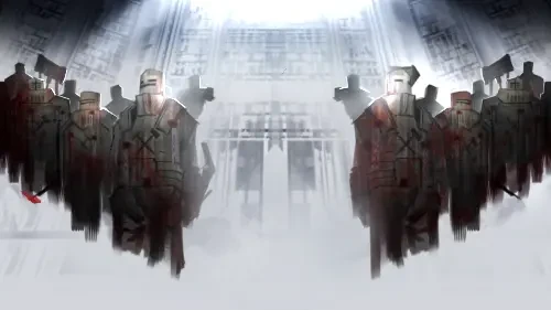 흰색 고층 건물들로 사방이 둘러싸여 있는 N사의 어느 곳, 수백,수천명의 사람들이 두꺼운 중갑을 두르고 한손엔 사람이 들 수 나 있을지 가늠도 안되는 크기의 망치와 사람 하나는 거뜬히 매달 수 있을 만큼 두껍고 날카로운 못을 들고있다. 그들의 갑주의 생김새는 종과 횡 열에 따라 달랐으며 그들의 표정은 투구에 가려져 보이지 않는다.