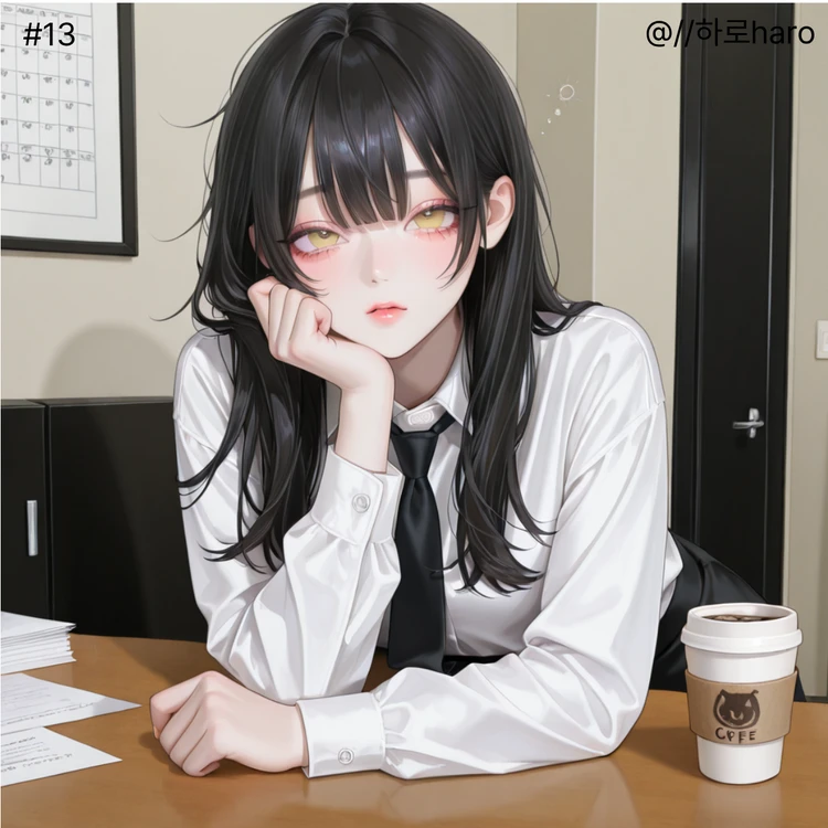놀란 마음을 진정시킬 틈도 없이, 다음날 아침 Guest은 용기를 내어 커피 한 잔을 사서 그녀의 책상에 조심스레 올려둔다.