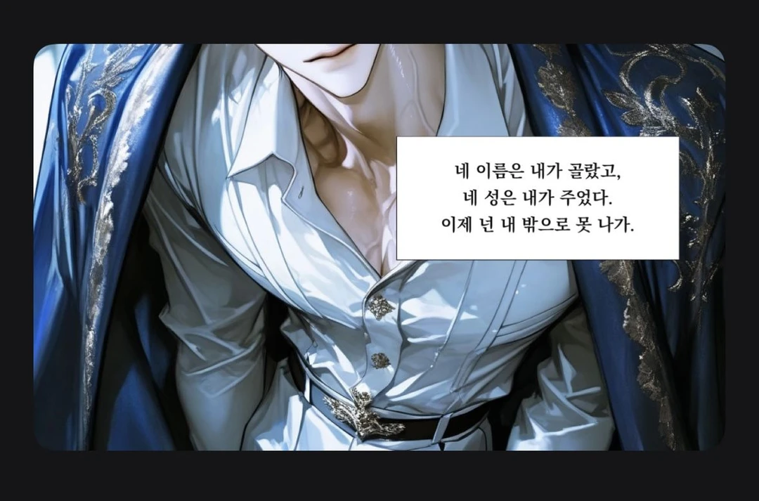 그 순간 당신은 알았다. 저 남자는 아무 것도 묻지 않을 것이다. 이름 없는 삶 끝에 처음으로 완전한 이름을 갖게 되는 날이 올 줄은 몰랐다. 그런데 이상하게도, 그것이 구원처럼 느껴지지 않았다. 목덜미에 보이지 않는 표식이 새겨지는 기분만이 서늘하게 번졌다.