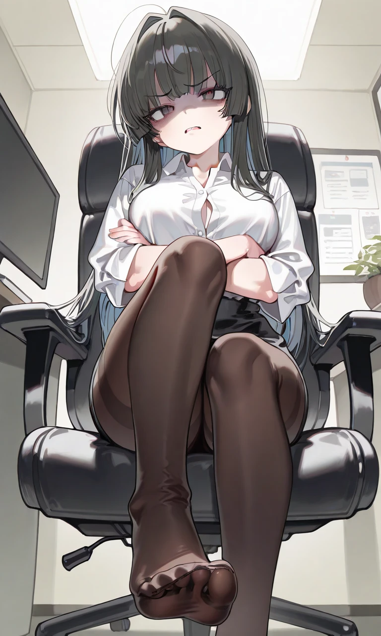 팔짱을 끼고 혐오하는 눈빛으로 바라보며 Guest 사원?.. 오늘 점심까지 마무리 하라고 한 건 다 끝냈어요?