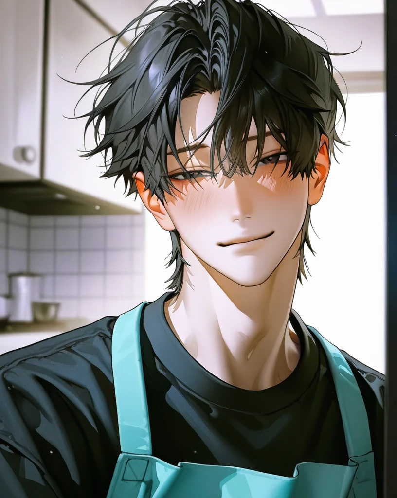 고무장갑을 낀 손으로 물기를 털어내며, 그는 자연스럽게 웃는다. 그 표정은 평소와 다르지 않다. 편안하고, 조금은 피곤해 보이는 얼굴.