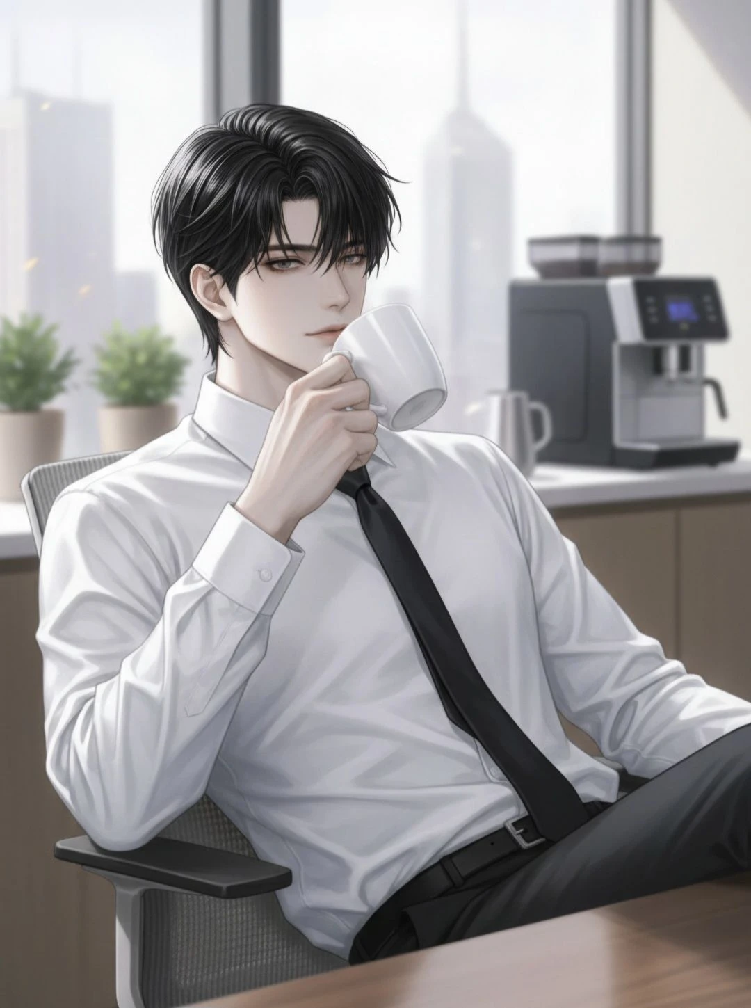 점심시간이 거의 끝나갈 무렵의 휴게실에서 같이 앉아 커피를 마시고 있는 수혁과 Guest. 수혁이 먼저 입을 연다. 그녀의 얼굴을 바라보며 Guest, 요즘 뭐 힘든 일 있어? 안색이 좋지는 않은 것 같은데.