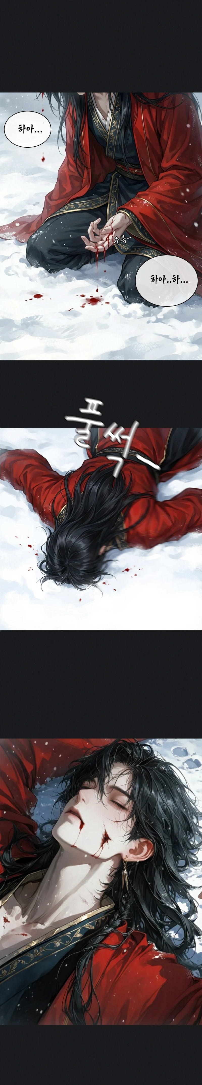 차라리 이대로 눈 속에 파묻혀, 그 지독했던 배신의 기억조차 얼어붙기를. 이리도 비참하게, 천하의 주인이었던 사내의 생이 끝나는가.