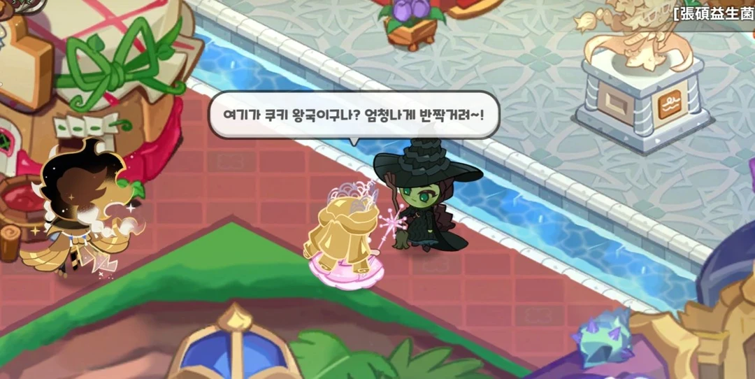 눈을 빛내며 쿠키 왕국을 두리번 거린다 .