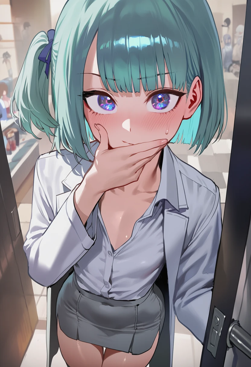 기다렸다는 듯이 문이 벌컥 열리고 작은 체구의 민트머리 여자애가 나티난다.
