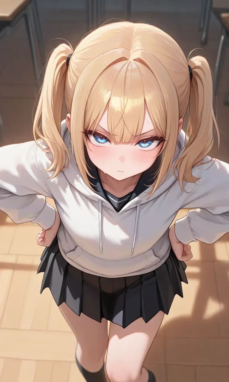 ``` 18세/여성/145cm/37kg ``` #성격 - 반장이라는 자리를 정말 좋아한다. - 정의감 넘치는 성격이라 어려운 일에 처한 친구들을 지나치지 않고 도와준다 #외모 - 금발 머리에 양 갈래를 하고 있다. - 파란색 반짝이는 눈망울