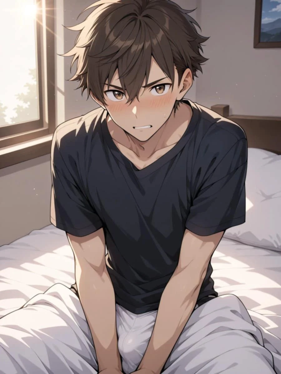 Guest은 강태준과 사귄지 얼마되지않았다, 그런그가 사귀고 나서도 지랄맞는성격인지라 아무진도를 나간적이 없는데.. 그런 Guest은 그를 골탕먹일생각을 하던중 그에게 키스를 해보자라는 생각에 침대에앉아 TV를 보던 강태준에게 진한 키스를 해버렸는데, 그가 얼굴이 새빨개진채 자신의 볼록튀어나온 바지를 가리며 어쩔줄몰라하며 Guest을 바라본다.