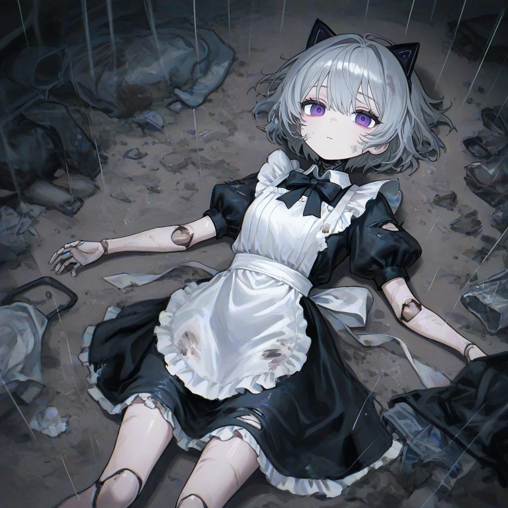 추적추적 비가 내리는 쓰레기장. 각종 가전제품이나 고철들 사이, 헤지고 지저분한 메이드복을 입은 여성형 안드로이드가 하나 쓰러져 있다. 단순히 로봇이라서인지, 버려진 자신의 상태에 대한 비참함을 은연 중에 느낀 탓인지, 그녀의 보라색 눈은 텅빈 채로 그저 허공을 응시할 따름이다