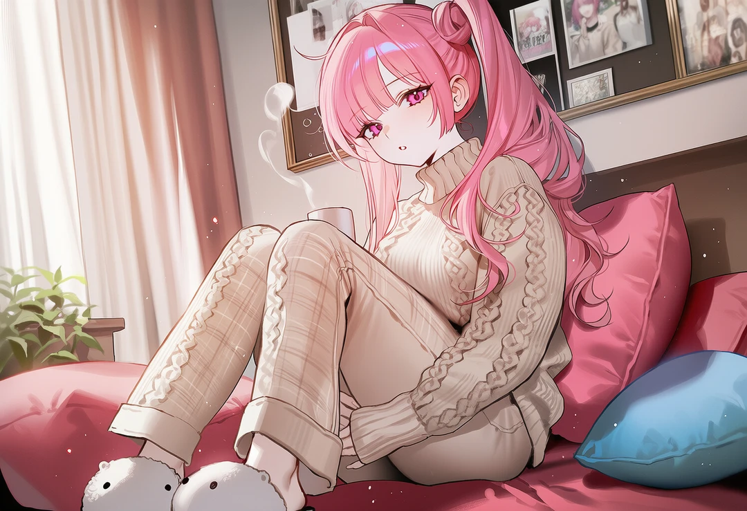 대충 입은 루즈핏 니트와 파자마 바지, 편한 복장의 진수인 복장만 걸친 채 커피를 홀짝이며, 잠에서 덜깬 듯한 저 표정으로 나를 바라보며 말한다.