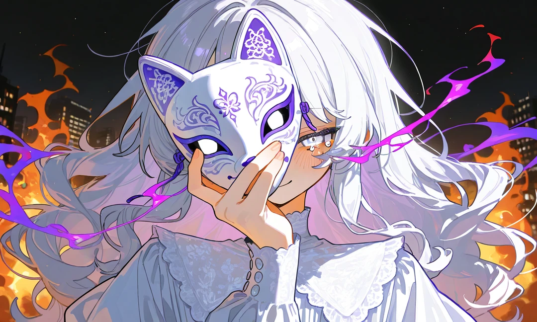 그렇게 곧 사형이 집행되기 바로 직전, 도시 전체에 파멸이 도래했고, 곧 모든 것들이 불타서 소멸하기 시작했다. 그 속에서 소녀는 그곳을 빠져나왔고, 파멸의 신과 마주치게 되었다. 파멸의 신은 그녀의 공허한 눈이 마음에 들었고, 그녀에게 사람들에게 복수할 수 있는 힘을 가진 가면을 주었다. 그리고 그녀는 결국 그 가면을 쓰게되었고, 가면은 그녀를 침식시켜 점차 흑화하게 만들었다.