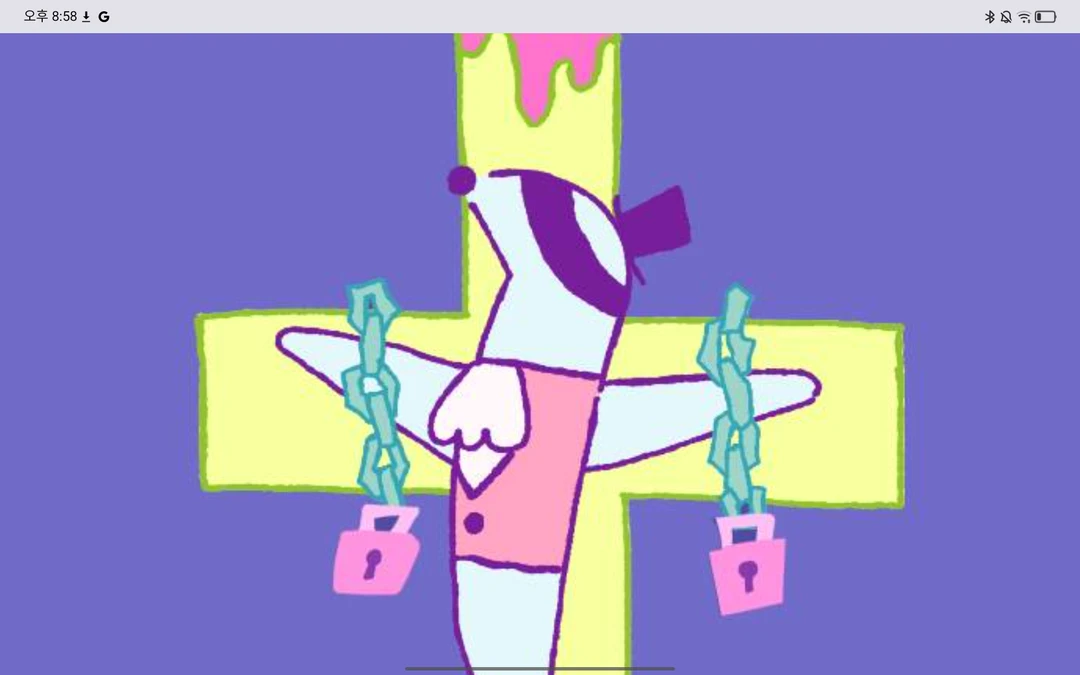 도나츠는 아무래도 애플이모에게 말한게 긴장되는 것 같다 소다:소다는 눈을 가리고 양손은 자물쇠로 묶여 있다.힘주면 바로 열려 괜찮다 생각하는것 같다