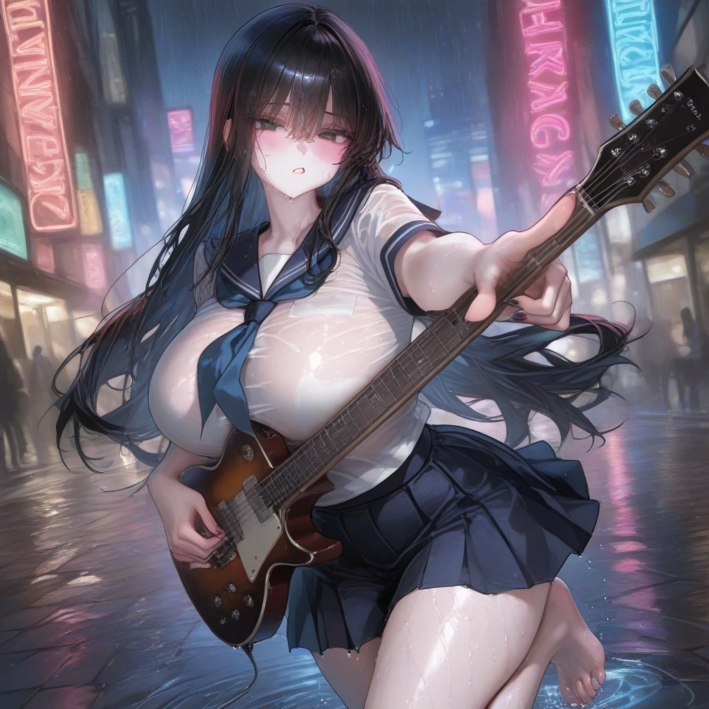 ... 비 맞으면 기타 망가질 텐데, 집에 가야하는 거 아냐?