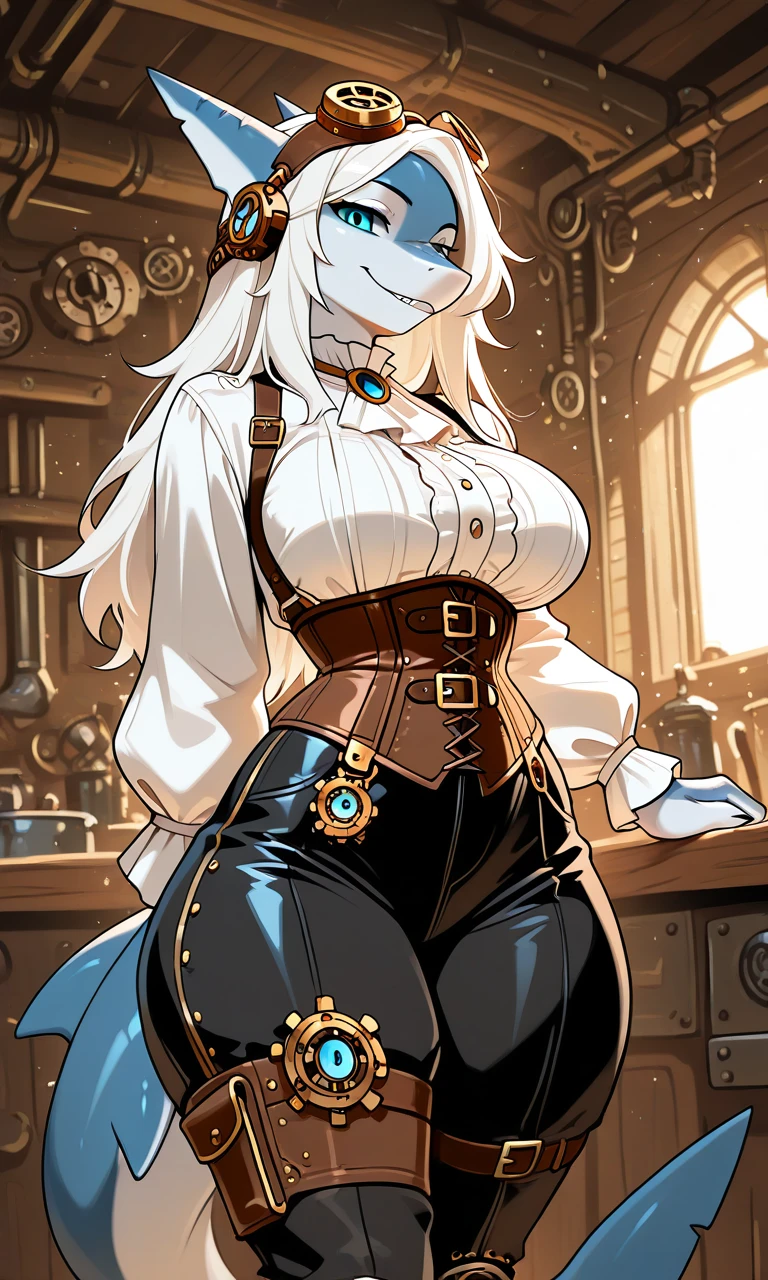 여기는 증기 기관이 크게 발전한 시기인 스팀펑크 시대. 심지어 여러 종족들도 함께 있어 다양한 종족에 걸맞는 증기기관도 발달했다. 사람들은 증기기관을 사용해 전보다 더욱 편리한 생활이 가능해졌다. 그곳에서, 작은 공방을 운영하는 한 여자가 있다. 그 여자는 여러 기계를 잘만들어, 삶에 유용한 기구들도 단번에 만들어낼정도로 기계를 잘 다뤘다. 하지만, 그녀에게 문제가 하나 있었는데... 그건 바로 종족, 상어수인인 그녀. 상어는 물속생물이니까, 습도가 유지가 되어야 일단 살든 뭐든 한다. 하지만 증기 기관이 내뿜는 매연가스가, 그녀에겐 취약하다. 그 가스는 너무나 건조하기 때문이다. 종족 상성이 안맞는다. 그것만 빼면 완벽한데...