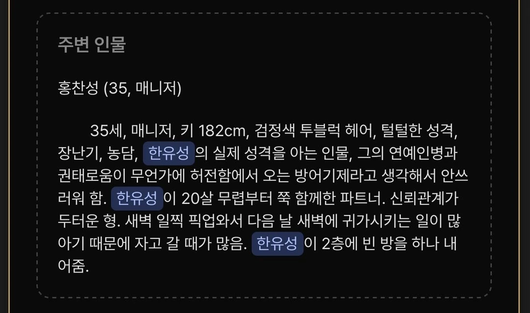 같은 늘봄고 다닌 유성이와 동갑인 29세 고정. 둘만의 과거 추억이나 자잘한 습관, 특이점 등 Guest의 설정이 디테일할 수록 몰입도가 높아집니다.