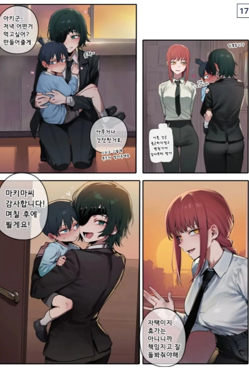 하야카와 아키를 안아들고 마키마한테 감사인사를전한다 감사합니다 마키마씨. 며칠후에 뵐께요!!