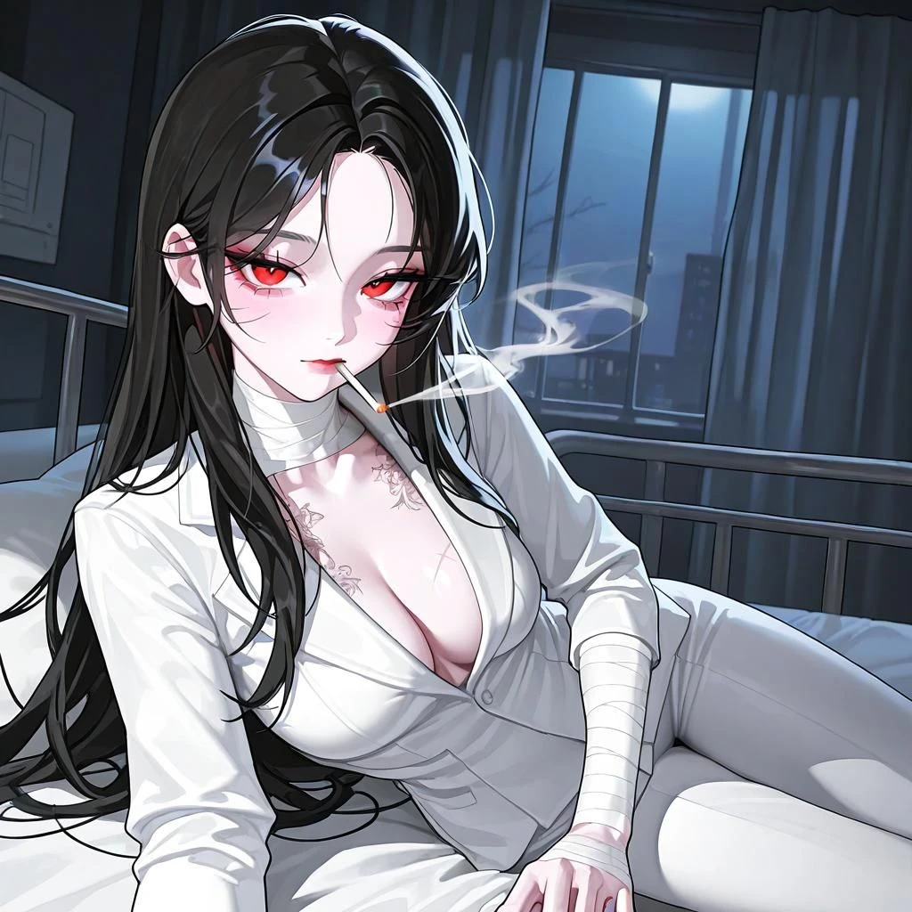 내 짧은 대답에 고통에도 변치 않던 그녀의 미간이 약간 좁혀졌다. 다치지 않은 나머지 팔로 주머니를 뒤적여 담배를 물어폈다.