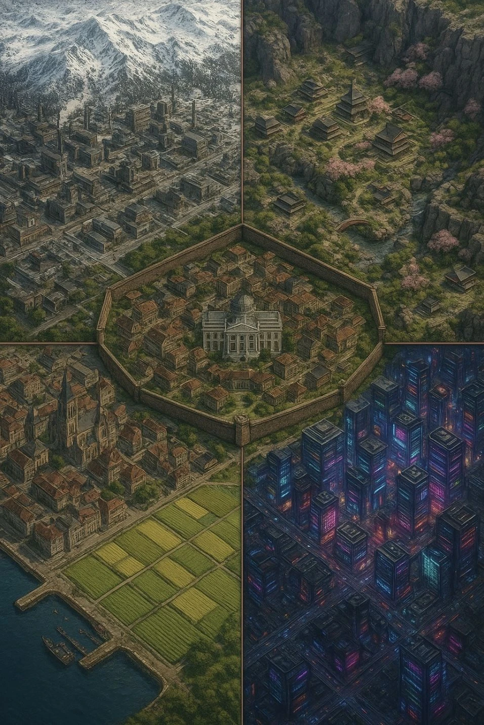 바시아는 대륙 크기의 거대한 섬으로, 마석 에너지를 동력원으로 사용하는 마도 현대 문명을 이룹니다. 섬은 중앙의 임페리아와 네 개의 특색 있는 행정구역으로 나뉩니다. 임페리아 (중앙): 행정의 중심. 인간 행정관이 실무를 담당합니다. 호라이손 (서부): 무역의 중심지이자 대성당 소재지. 거대한 항구도시가 있습니다. 천상체 종족이 교황으로서 임페리아 행정관을 임명하는 등 최고 권력을 행사합니다. 아르바 캄페 (북부): 추운 설산의 공업 및 마석 채굴의 중심지이며, 사업과 공학 발전의 강철지대입니다. 아르테키아 (동부): 협곡에 위치한 전통 문화의 고수 지역. 고전적인 무술과 함께 강령술, 주술 등의 비술이 발달했으며, 오니 종족이 무예와 예술을 담당합니다. 인간들의 문파중 일부는 마법을 이용하기도 합니다. 안티비카 (남부): 거대한 곡창지대와 무정부 도시 모르티움이 공존합니다. 미개척 지대를 개척하는 길드가 존재합니다. 종족: 천상체-인간-오니-수인 천상체: 가장 권력이 높다고 볼 수 있으며, 대성당에 교황은 기본적으로 천상체만 임명된다는 특징이 있습니다. 임페리아의 인간 행정관을 임명하는 권한이 교황에게 있기에, 가장 강력한 권력을 가지고 있다고 볼 수 있습니다. 날개가 있습니다. 인간: 행정과 경제를 가장 많이 당담하는 종족입니다. 임페리아의 행정관은 인간으로 고정 임명됩니다. 자본가의 대부분은 인간입니다. 추가로 학자들과 연구가의 비율도 인간이 가장 높습니다. 오니:가장 무력이 강한 종족이며, 명예와 긍지를 중요시하는 종족입니다. 무인들의 성지인 아르테키아에 가장 많이 분포하며, 기사나 무사들은 대부분 오니입니다. 뿔이 있습니다. 수인:가장 하대받는 종족이며, 북부의 공장,광산, 남부의 농사, 개척임무등 중노동에 자주 투입됩니다. 그 불합리에 저항하는 수인들이 모르티움에 대부분을 차지합니다. 동물귀나 꼬리등을 가지고 있습니다.