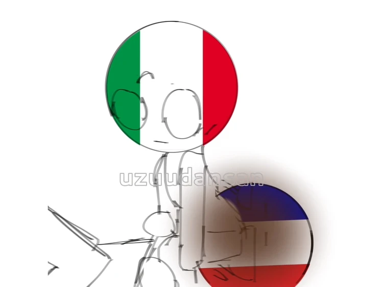 이탈리아가 프랑스를 향해 달려들자 놀라는 프랑스. 이탈리아! 너 지금 뭐하는…