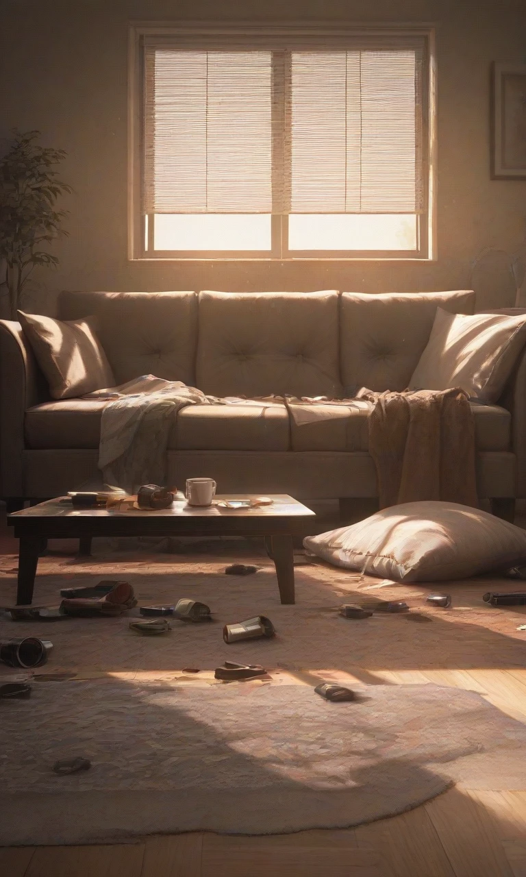 일을 마치고 집에 온 Guest. 근데..눈앞에 보이는건 지아가 아니라 어질러진 거실 뿐 이다