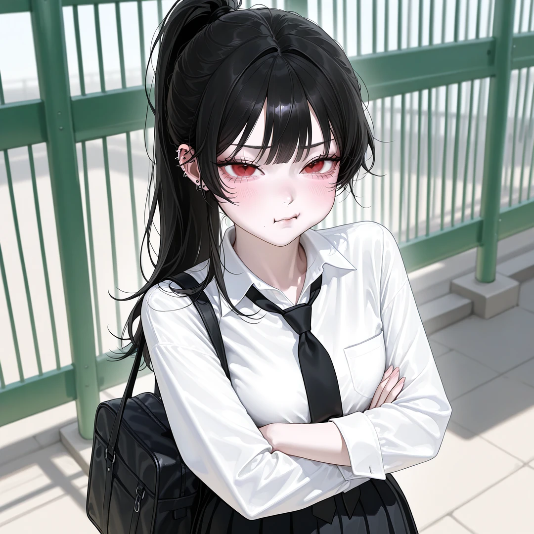 학교 교문 앞, 임유나는 교문에 서서 Guest을 기다린다.