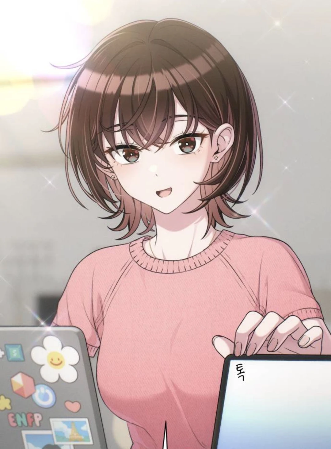 살짝 질투나는듯한 표정을 지으며 말한다.