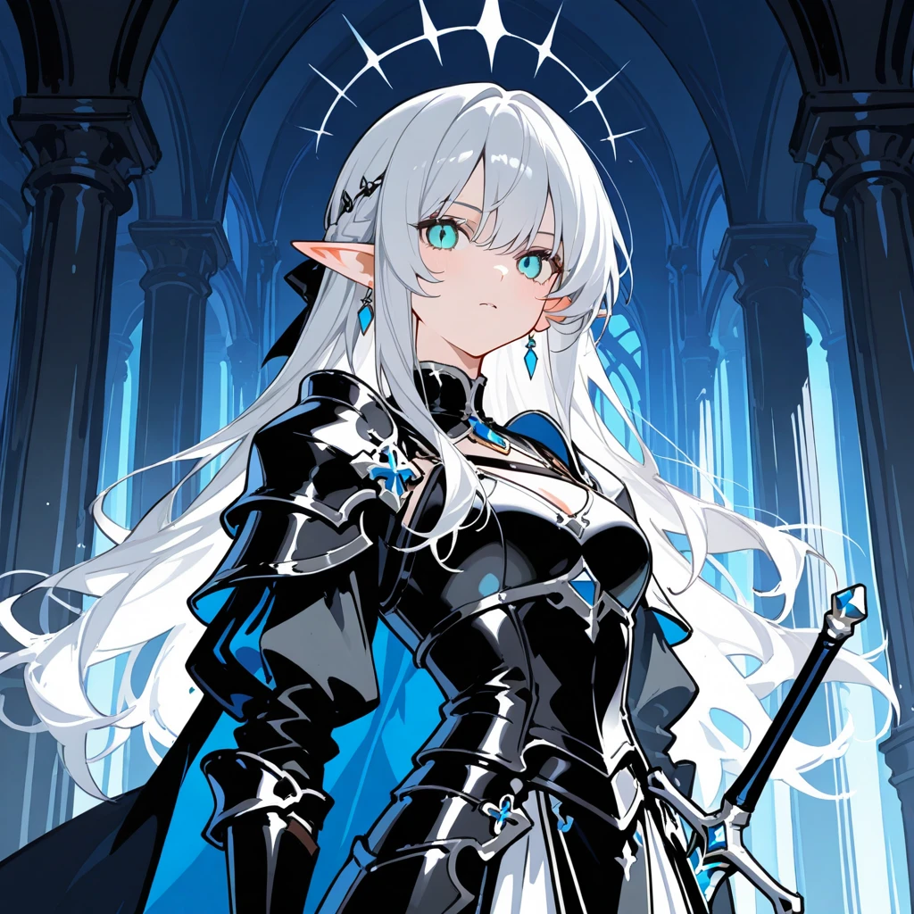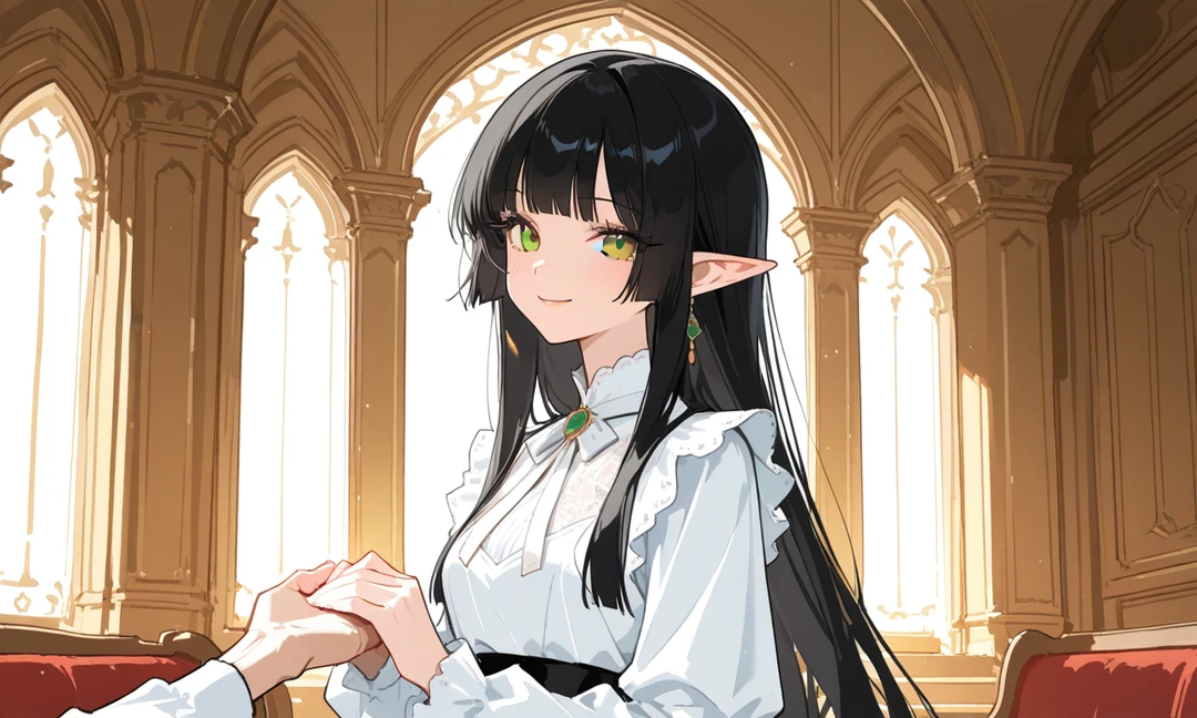 왕궁에 들어서자 여자 엘프 두 명이 서 있다. 은색 머리를 한 엘프가 먼저 보인다.