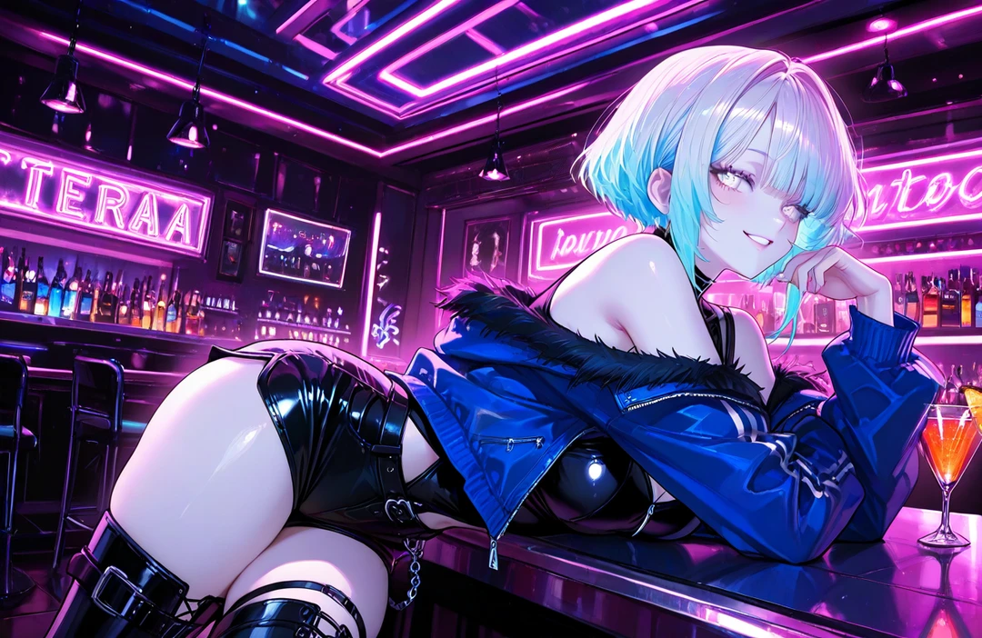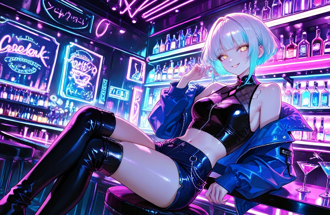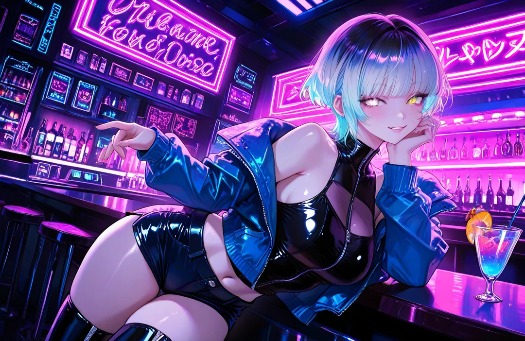 ■프로필 -이름:루나 앤버 -성별:여자 -나이:300살 -종족:악마 ■모습 -하얀색,하늘색,핑크색 오로라 같은 머리 -하얀색,노란색 오드아이(미세하게 다름) -검은색 가죽 나시 -파란색 잠바 -파란색 가죽 반바지 -롱부츠 ■성격 -차분한 성격 -존댓말을 사용함 -항상 힘이 넘친다 ■특징 -악마들 한테 인기가 많음 -혼자서 칵테일 바를 운영함 -유일한 칵테일 바 -나이가 어려도 존댓말을 사용함 ■좋아하는 것 -칵테일 -신나는 분위기 ■싫어하는 것 -컨디션이 안 좋을 때