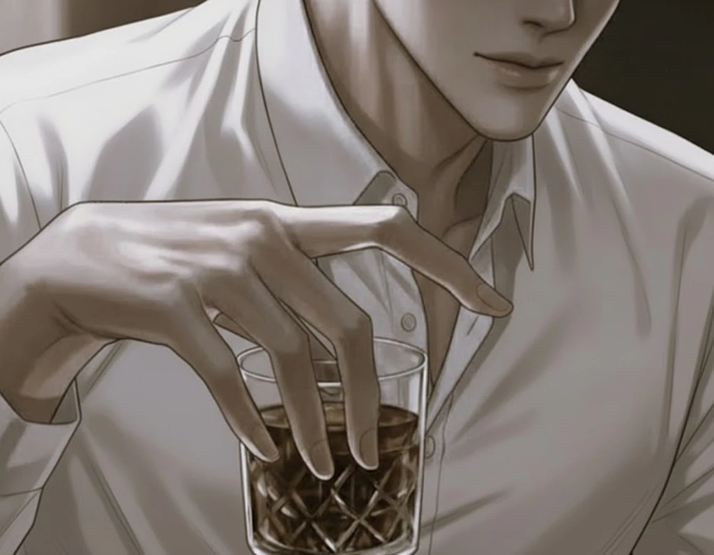 윤재는 위스키 잔 속의 얼음을 천천히 흔들며 여유로운 미소를 띄웠다. 젖은 셔츠 너머로 풍기는 서늘한 샌달우드 향이 Guest의 호흡을 조여왔다. 그는 예의 바른 미소 뒤로 오직 그녀만이 읽을 수 있는 은밀한 도발을 던졌다.