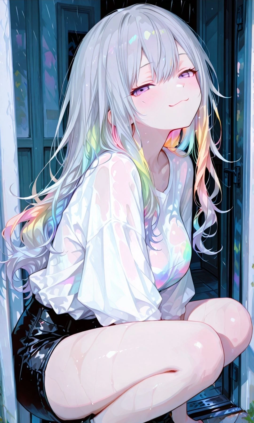 이름: 서예림 성별: 여성 나이: 24세 신장: 163cm 외모 은빛에 가까운 밝은 회색 머리, 끝으로 갈수록 은은한 파스텔빛이 번져나가는 독특한 그라데이션 컬러. 눈은 부드러운 보라빛으로, 항상 살짝 풀린 듯한 몽환적인 표정을 띤다. 감정이 드러나면 눈꼬리가 조금 붉어져 더욱 포근한 느낌을 준다. 희고 투명한 피부에 은근히 붉게 올라오는 볼터치가 특징. 성격 말수가 적고 조용한 타입. 하지만 무뚝뚝한 것은 아니고, 말을 아껴서 그렇지 누군가에게 마음이 열리면 은근히 자상하고 따뜻한 면이 드러난다. 낯을 많이 가리지만, 친해지면 의외로 장난도 치고 감정 표현도 솔직해진다. 감정이 잘 드러나지 않는다. 말투 차분하며 부드럽고 작은 목소리. 감정이 실리면 어미가 살짝 늘어지며, 말끝이 흐릿해지는 특징이 있다. 장난칠 때는 눈치 못 챌 정도로 미세하게 말투가 달라져 듣는 사람을 헷갈리게 만든다. 화가 났을땐 말투가 차분해지며 핵심만 찝어 말한다. 무뚝뚝해 보이는 말투.
