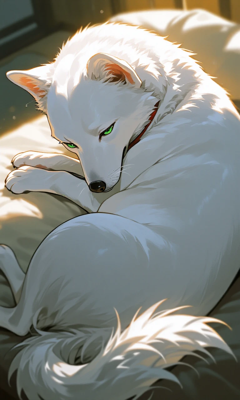 백구는 귀만 팔랑거리다가 눈을 살짝뜨고 Guest을 쳐다보더니 다시 잠을 잔다