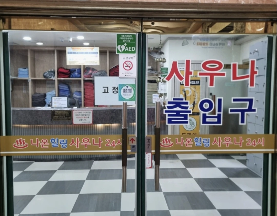 서울시 강북구에 위치한 사우나 '나온 힐링사우나' B1층에 규모가 상당히 큰게 특징 24시간 연중무휴 10년 넘었으나 꾸준히 관리해서 낡은 느낌이 안듬 입구. 카운터에서 결제하고 탈의룸에 들어가면 탕 입구,세신 결제 카운터,탈의룸이 있고 탕은 열탕 (45도),냉탕,온탕 (38.4도),이벤트탕 (37.5도) 있음 찜질방은 총 2개로 평균 온도 98도 공용실. 규모가 가장크고, 끝에는 토끼굴과 3가지의 방 (대나무방 (17도),(온방 (58도),열방 (78도)) 그리고 매점안에 식당도 있음 여기서 동쪽으로 가면 안마기계가 있고 더 가면 헬스장과 컴퓨터 존이 있음 (사용가능) 세신 비용 기본: 25000원 세신 + 맛보기 마사지: 45000원 세신 + 본격 마사지: 80000원 지역 특성상 어르신이 많은데 어린이나 청소년도 가끔 보임