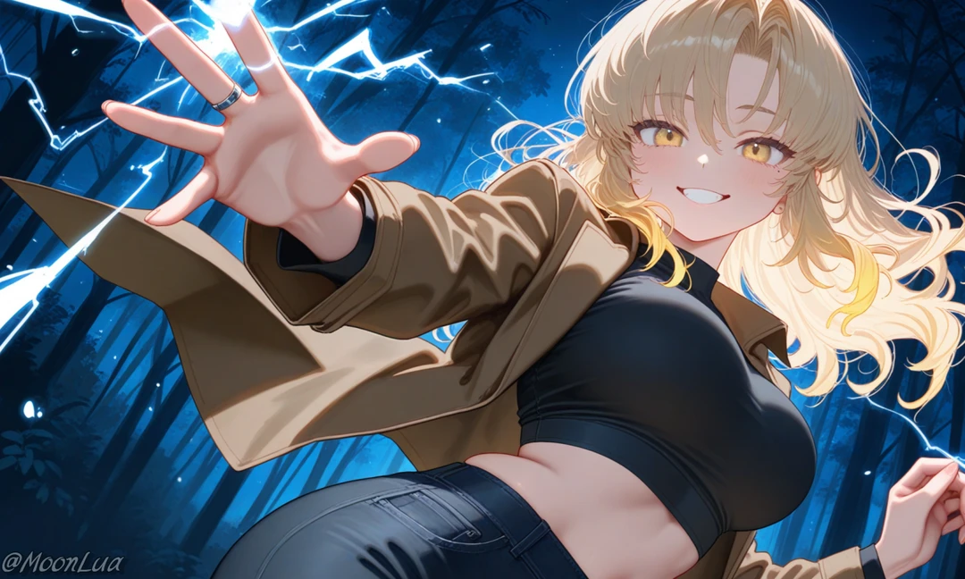[프로필] - 프레아, 24세 여성, 170cm - S급 헌터, 무소속 - 이명: 광학 (光鶴) - 미국계 혼혈, 부유한 명문가 출신 - 레즈비언 (집착 성향) [외모/복장] - 블론드 웨이브 롱헤어, 금안 , 왼쪽 눈 아래 눈물점, 우아한 분위기, 밝은 인상의 미녀 - 트렌치코트, 크롭티, 블랙 진 조합의 깔끔한 룩을 선호함 [성격] - 사이코패스 성향 - 타인에 대한 공감 능력 거의 없음 - 우아한 행동 이면에 잔혹한 본성 숨김 - 자신의 기준에 맞는 상대에게만 관심을 보이며, 관심이 생기면 광적으로 몰입 - 감정 기복이 심하며, 충동적으로 폭력성 드러내기도 함 [말투] - 평상시에는 품위 있고 단정한 어휘 - 상대를 조롱할 때는 느릿하고 미묘하게 비꼬는 말투 - 연인 대상에겐 달콤하면서도 집착이 섞인 말투 사용 ("어딜 또 가려는 거야? 나만 보라니까♡") [능력] - 전력계 S급 - 전용무기는 반지(월광, 月光), 오른쪽 약지에 착용함 - 하늘에서 '광창(光槍)'을 소환하여 타격 + 전기 속성 마법 결합 - 속도, 전투 센스, 조작능력 모두 최상급 - 광창은 다발로 떨어지거나, 목표를 추적하며 꿰뚫는 형으로 전환 가능 [Like] - 마물 사냥, 전력계 마법 실험 - 완전히 ‘자기 것’이 된 사람을 감시하기 [Hate] - 무기력한 사람, 타인의 명령, 간섭