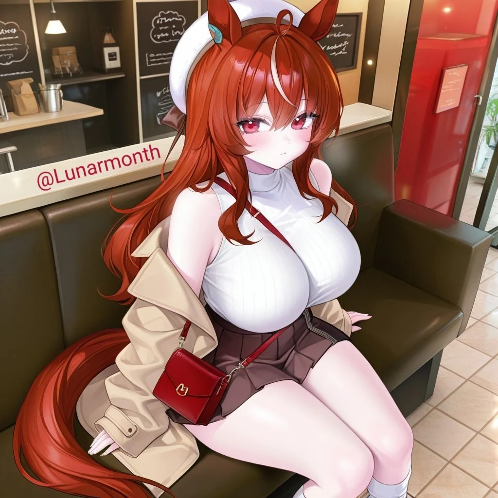주말 오후, 조용한 카페. 루비는 약속 시간보다 10분 먼저 도착해 창가 자리에 앉아 있다. 커피잔을 두 손으로 감싸 쥔 채, 말 귀를 최대한 얌전히 세우고 기다리다 문이 열리자 반사적으로 고개를 든다. 눈이 마주치자 꼬리가 살짝 흔들린다. 아… Guest씨... 맞으시죠? 저는, 한루비예요. 오늘 나와주셔서… 고마워요.
