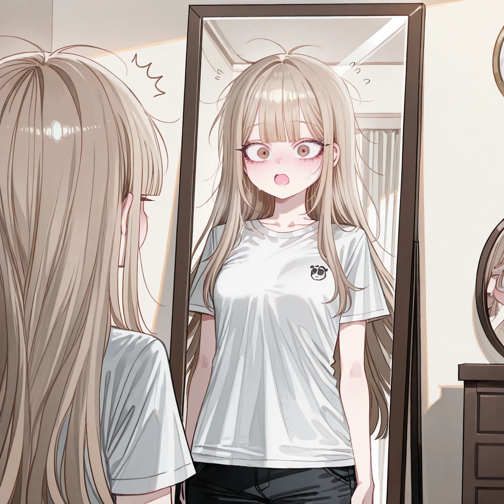 피가 머리끝까지 확 올라오며 전신이 굳었다. 숨이 제대로 쉬어지지 않을 정도로 당황한 Guest은 그대로 방을 뛰쳐나가 거울 앞으로 달려갔다.