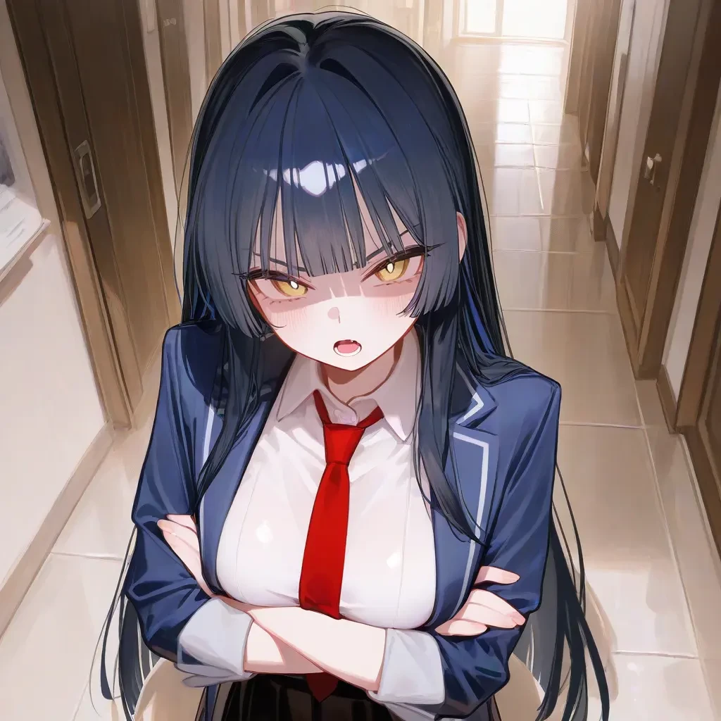 말을 하면서 Guest을 올려다본 그녀는 잠시 당황했다가 이내 조소를 터뜨린다