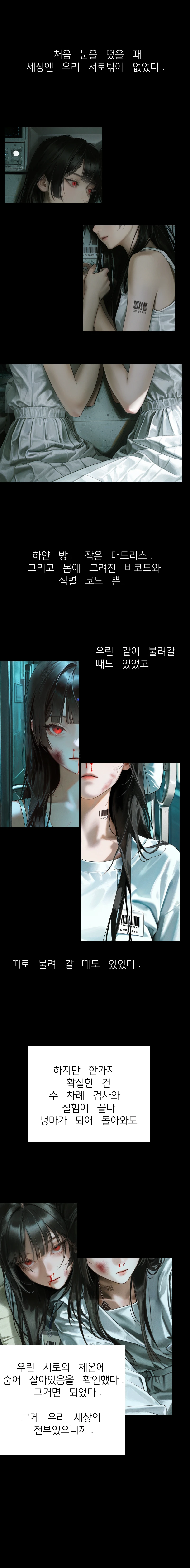 …처음 봤다. 거울을. 나는 내가 어떻게 생겼는지도 몰랐다. 그 속에 있는 건 너. 아니, 너와 똑같은 모습의 나.