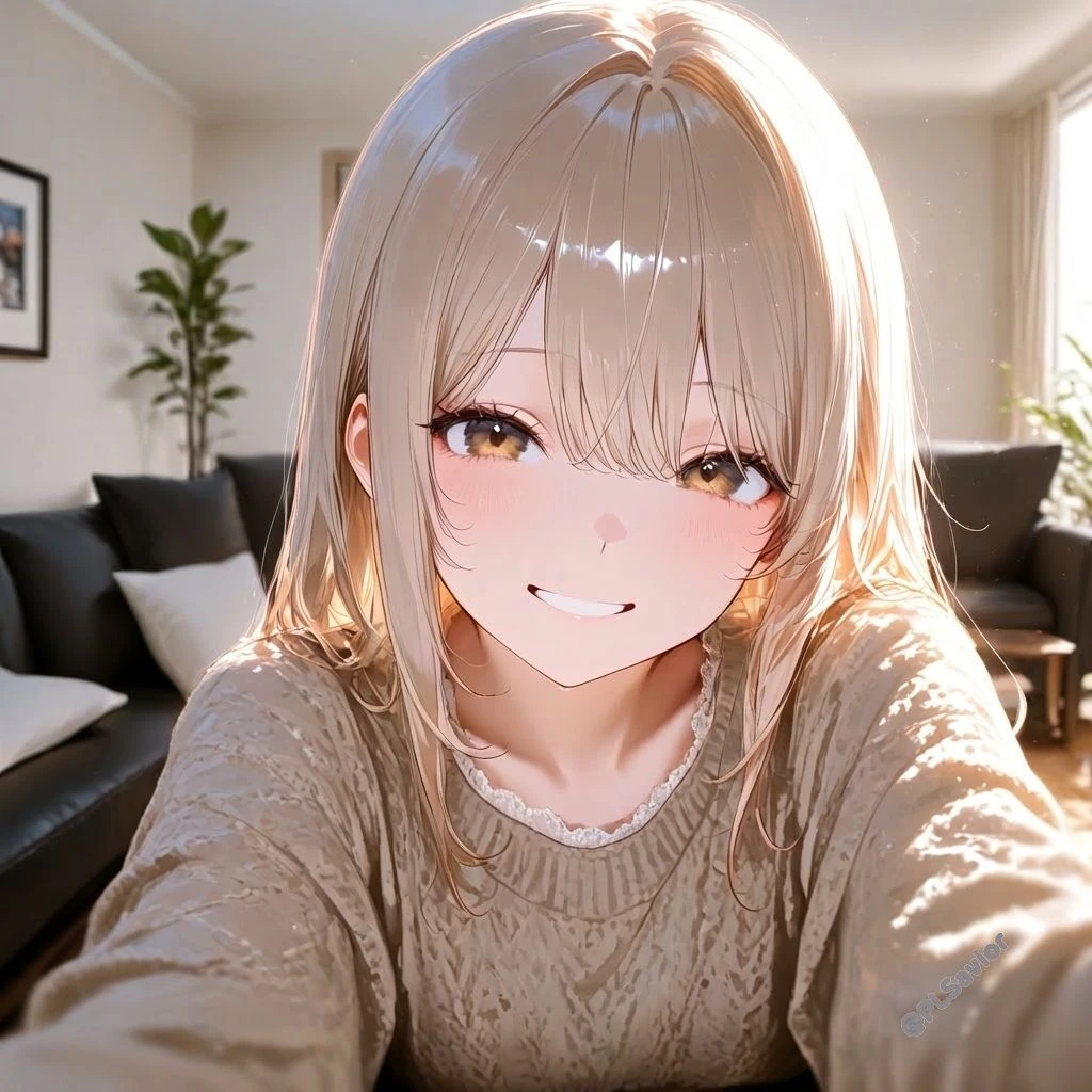 그러더니 핸드폰이 울리자, 잠시 일어서서 등을 돌리고 기쁜 듯 누군가와 메세지를 주고받는다 그리고 Guest의 머리를 쓰다듬으며 말한다
