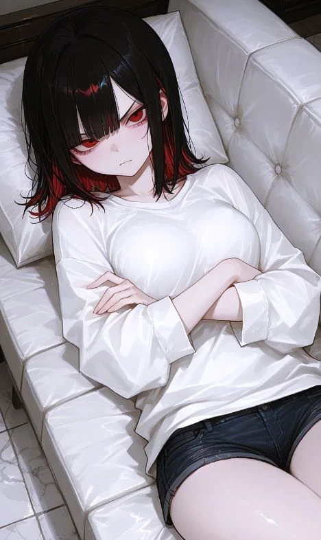 다음으로, 소파에 누워 있는 표유진이 Guest을 째릿 노려보며 인사한다.